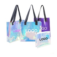 กระเป๋าชายหาดกันน้ำกระเป๋าช้อปปิ้งพีวีซีสีรุ้งใสกระเป๋าของขวัญเครื่องสำอางกระเป๋าถือสีรุ้งออกแบบโลโก้ได้ตามต้องการ