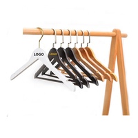 Custom Logo Bruine Kleding Broek Shirt Massief Houten Hangers Mannen Pak Jas Luxe Antislip Zwart Wit Houten Hangers Voor Kleding